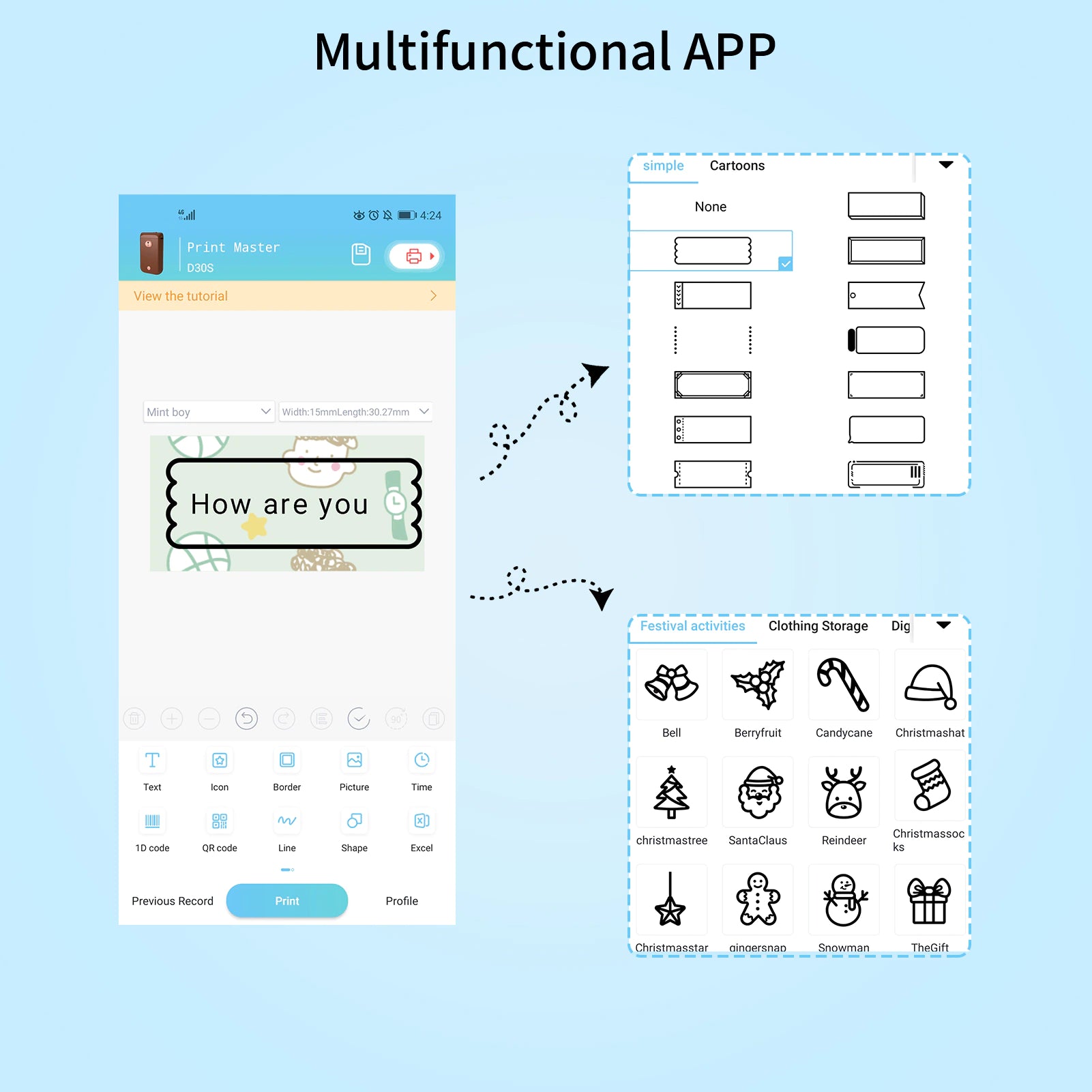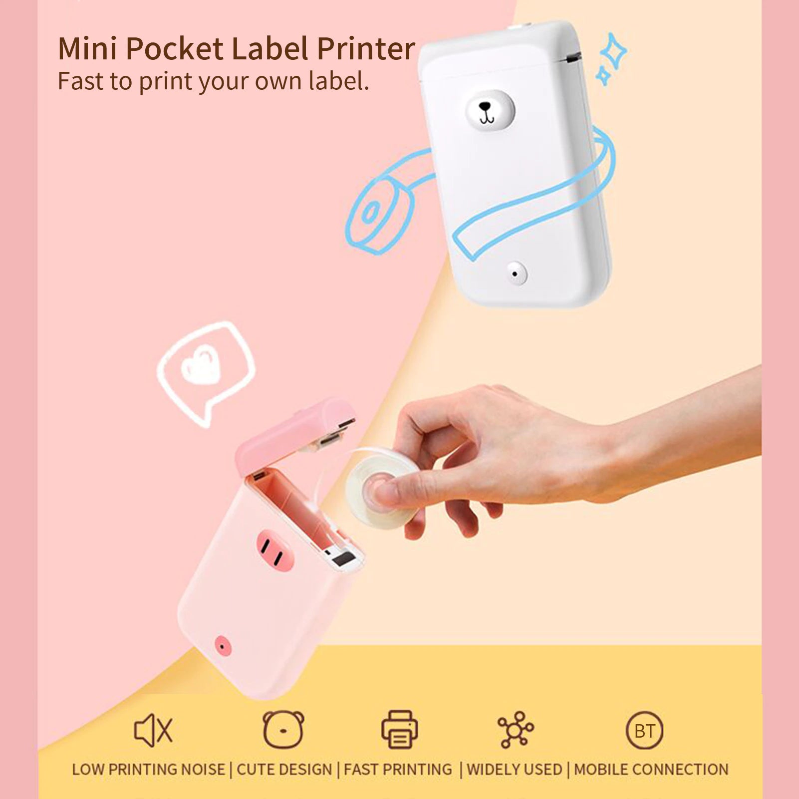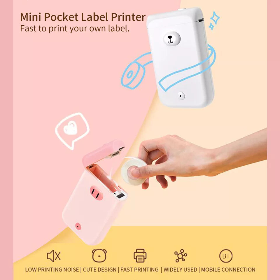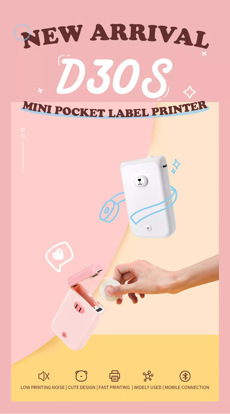 🖨️ Mini Pocket Label Printer : Mini & portable design, cute appearance, fast to print your own label, great for household and business. Support printing text, icon, frame, picture, time, 1D code, QR code, line, shape, excel import, scan, form, OCR text recognition, voice recognition, etc.