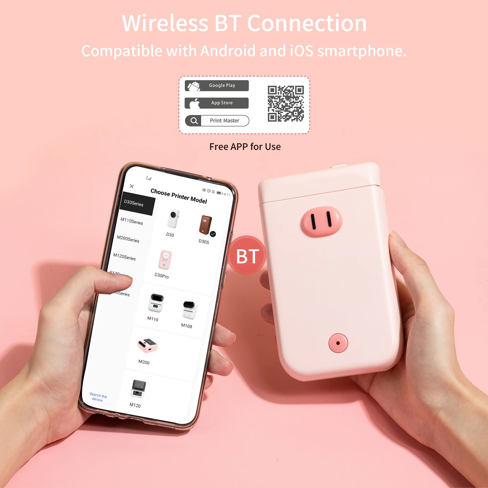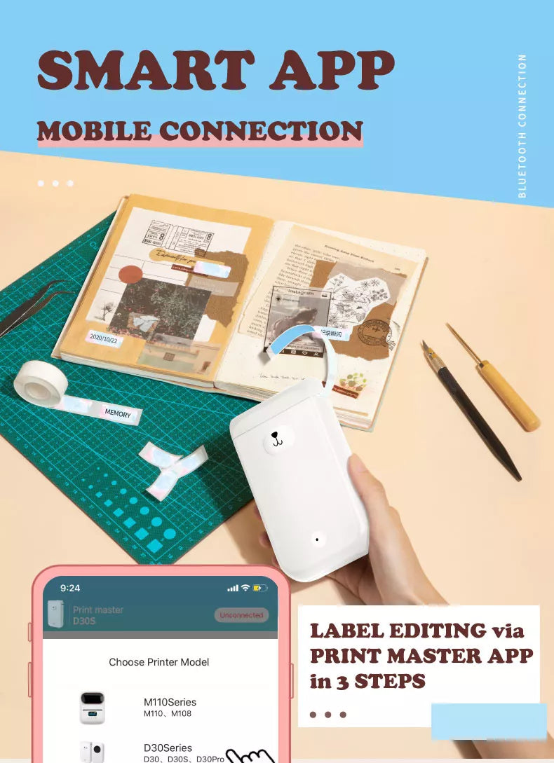 🖨️ Simple Operation : Support Wireless BT connection, compatible with Android and iOS smartphone. Please follow the user guide to download relative APP "Print Master" on your smartphone, you can print anytime and anywhere when they connect successfully.